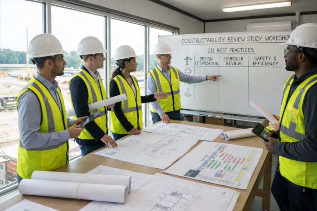 The Constructability Review Study Workshop brings together engineering, construction, and project management professionals to evaluate designs, methods, and schedules from a constructability standpoint. This facilitated session by DVC enhances build efficiency, safety, and cost-effectiveness, reducing rework and improving coordination before project execution begins. This workshop follows the best practices developed by the Construction Industry Institute (CII) to ensure optimized project delivery and execution excellence.