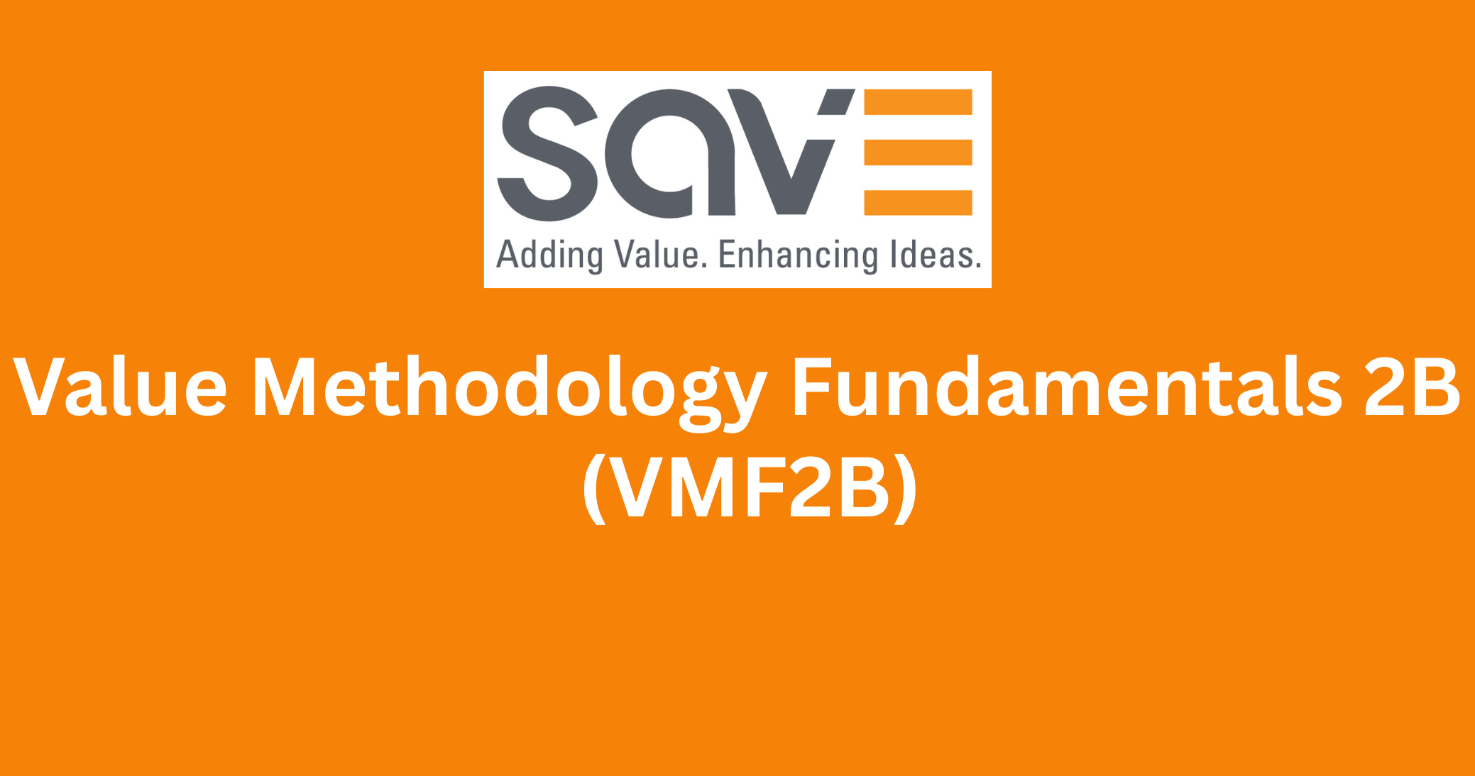 The VMF2B is a facilitated training course (30-hours in duration)—delivered virtually or in person by SAVE International®–approved instructors— that introduces the Core Competencies expected of a Certified Value Specialist (CVS®). The VMF2B course contains lecture, discussion, practice and review to deliver the core competencies aligning with more advanced value understanding associated with the delivery of value workshops. It is one of the pre-requisites to attend the CVS® exam.